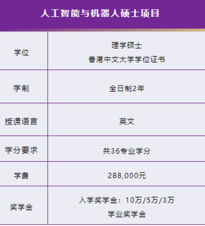 人工智能与机器人硕士项目是由香港中文大学(深圳)数据科学学院和理工学院共同开设。 学制为两年,并提供两个细分方向供学生选择:人工智能、机器人。 本项目依托港中大(深圳)两院及深圳市人工智能与机器人研究院的优秀师资和科研力量,旨在培养人工智能与机器人领域的尖端人才。