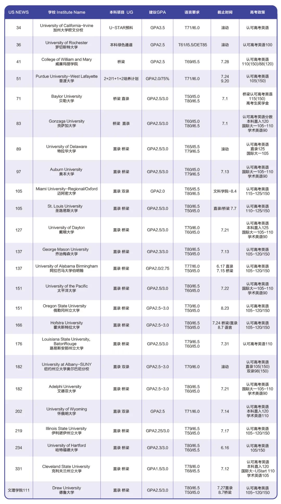 能双录取的美国大学还是有很多的,不少综合排名前一百的大学都提供有条件录取的方式。
