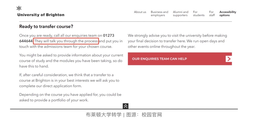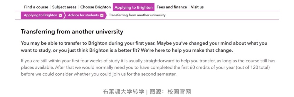 但也有大学无需UCAS, 直接联系大学进行转学申请 ,比如布莱顿大学