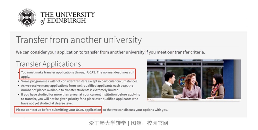 比如,爱丁堡大学就明确表示,转学 主要通过UCAS操作 ,但也需要联系大学说明转学的情况