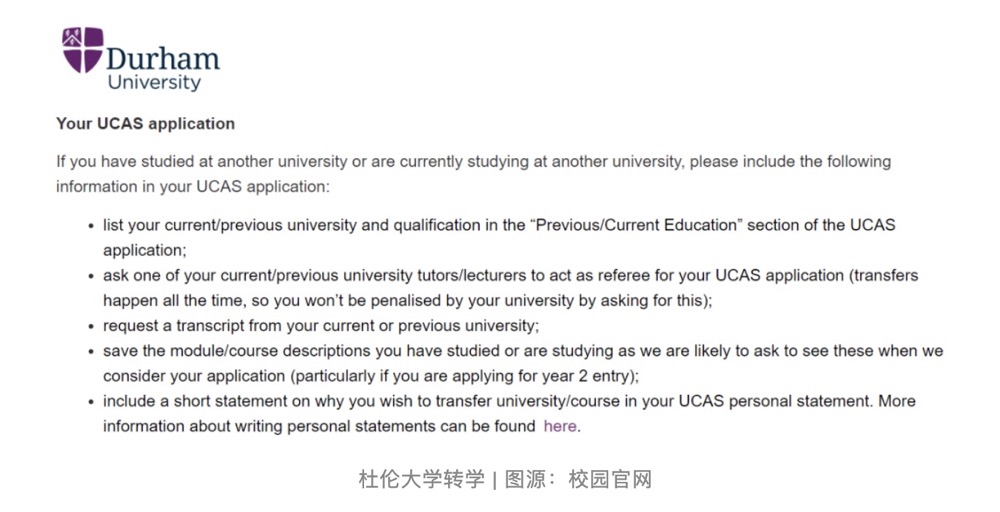 如果学生 通过UCAS提交转学申请 ,则需在申请中包含以下信息: