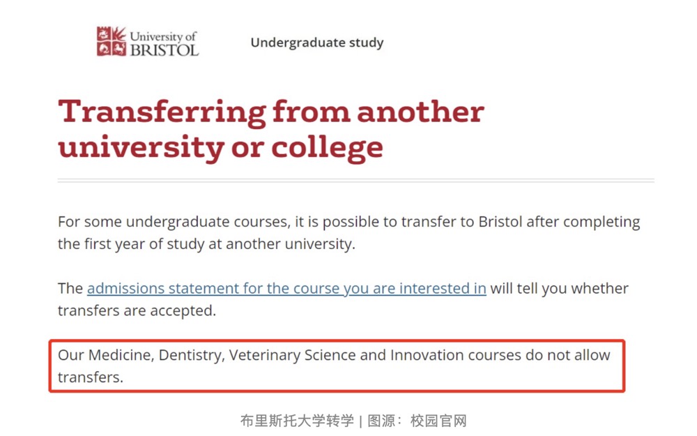 虽然部分大学是通过UCAS进行操作,但因为转学涉及到的方面比较多,比如布里斯托大学对于转学的科目就会有限制, 医学、牙科和兽医课程不接受转学生
