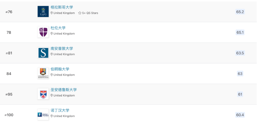 南安普顿大学在2024年QS世界大学综合排名中位列第81名。在2023年THE世界大学排名中位列第108名。