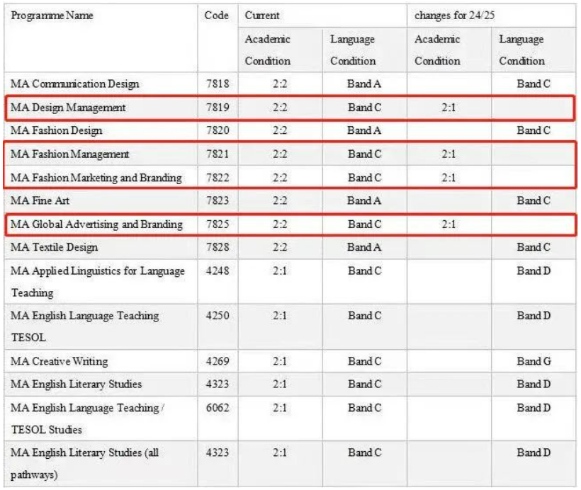 此次更新入学要求的主要是艺术与人文学部的部分本科和授课型研究生专业,包括常申的设计管理、时尚设计、时尚营销与品牌等;