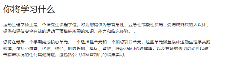 利用生理学、肌肉骨骼康复和专业实践等领域的应用知识,我们的毕业生可以在各种环境中担任认可的运动生理学家,包括: 体育、健康和健身行业 职业健康和安全 私人健康 公共卫生 复原 研究与技术 教育 医疗保险。