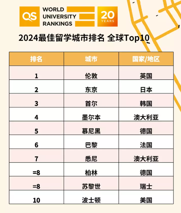 紧随其后的是两个亚洲城市——东京和首尔,然后是墨尔本、慕尼黑、巴黎、悉尼、柏林、苏黎世、波士顿。