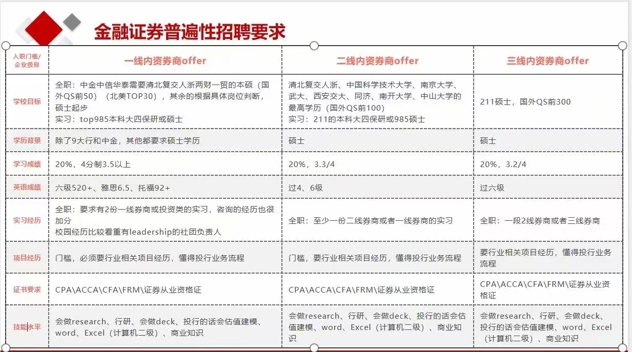 【金融券商】和【管理咨询公司】 实习生&全职招聘门槛是什么?