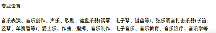 音乐专业的设置上主要有以下这些: