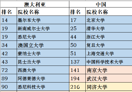 澳大利亚百强院校榜单