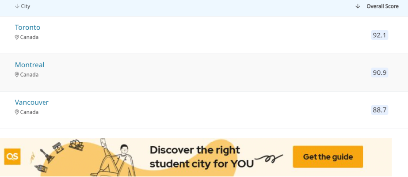 7月19日全球高等教育和商科教育研究机构QS Quacquarelli Symonds 发布了 2024年世界最佳留学城市排名 !本次排名是第 11 版 QS 最佳留学城市排名。