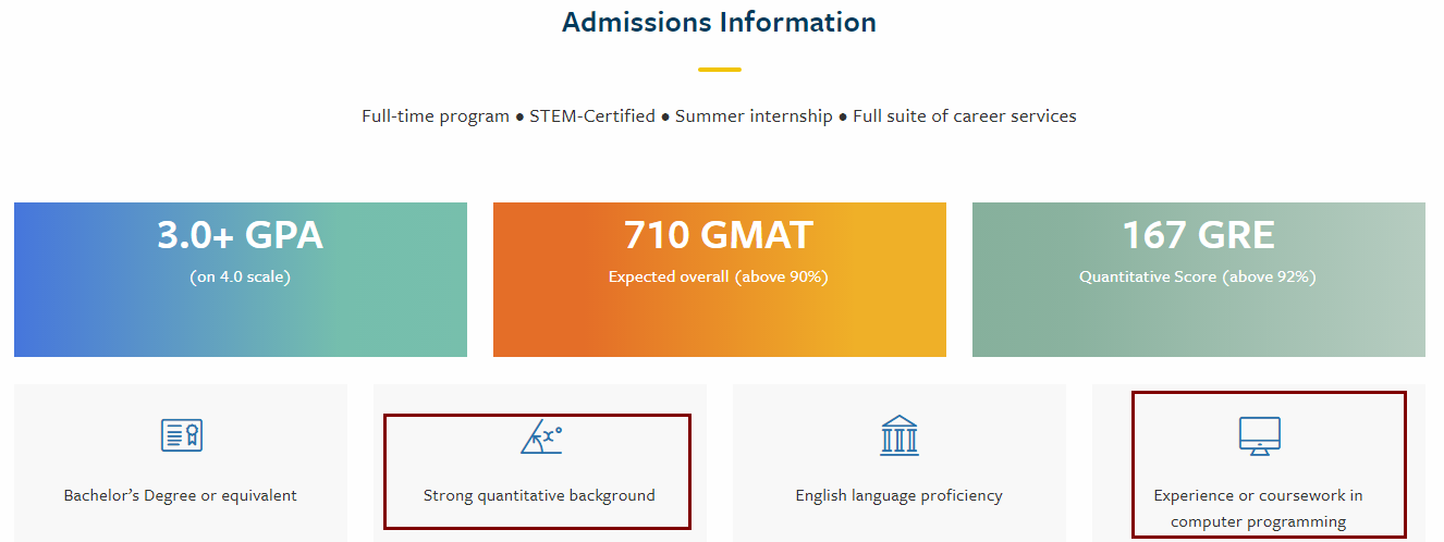 麻省理工学院的BA项目是MIT Operations Research Center和Sloan商学院合办的,旨在教会大家在数据科学领域建立商科思维。所以申请人应具有优秀的数学、计算机科学和/或统计学背景, 他们特别喜欢有STEM背景的学生。
