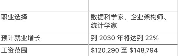 虽然这个专业相对较新,但该领域的就业人数正在呈指数级增长。企业收集大量数据来确定趋势、预测买家行为等等!他们正在聘请数据科学家来理解这一切。