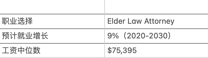 虽然法律就业市场的增长速度不如其他就业市场,但职业机会可能增加的一个领域是老年法律。此类法律主要关注弱势老年人。法律预科(甚至政治学、历史、英语或哲学)学位将为有抱负的律师进入法学院做好准备,因为它提供了人文和社会科学的广泛概述。