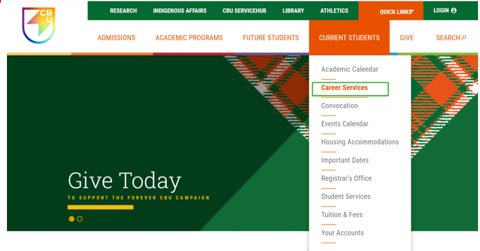 在CBU官网 Current Students→Career Services→Student Job Opportunities