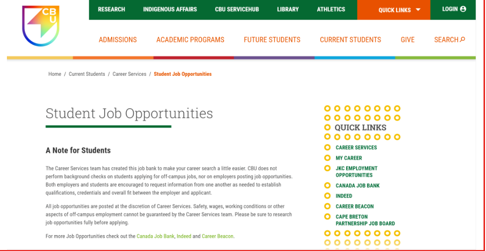 或者,在CBU官网内搜索栏输入Student Job Opportunities即可找到最新的页面啦~(它长这样)