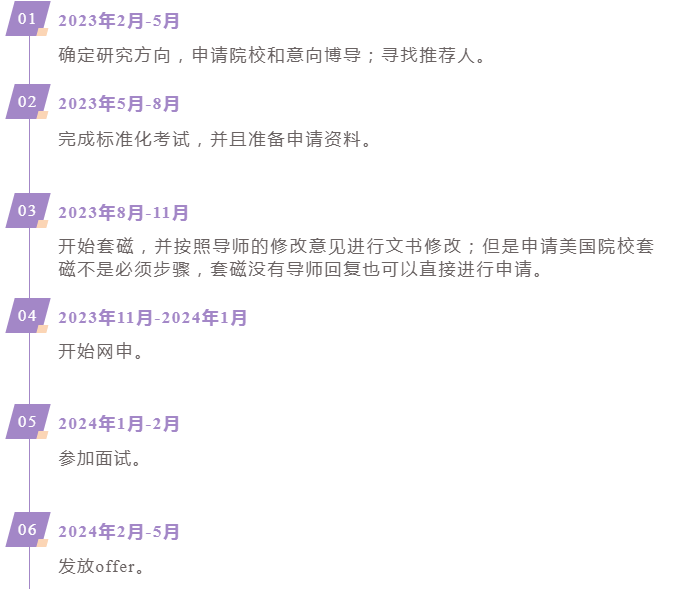 美国博士项目时长通常为 5-7 年,比英国、欧洲的博士课程需要更长的时间。博士的前两年,博士生会学习基础课程,通过第二年的博士资格考试后,才会正式成为博士候选人,开始准备自己的研究课题。