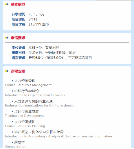 03 众所周知,大部分加拿大的硕士申请需要本科背景一致。如果你不喜欢自己的本科专业,但又不符合硕士跨专业的要求,通过读研文也更容易换到喜欢的专业,因为大部分研文专业对前置课程的要求没那么苛刻。