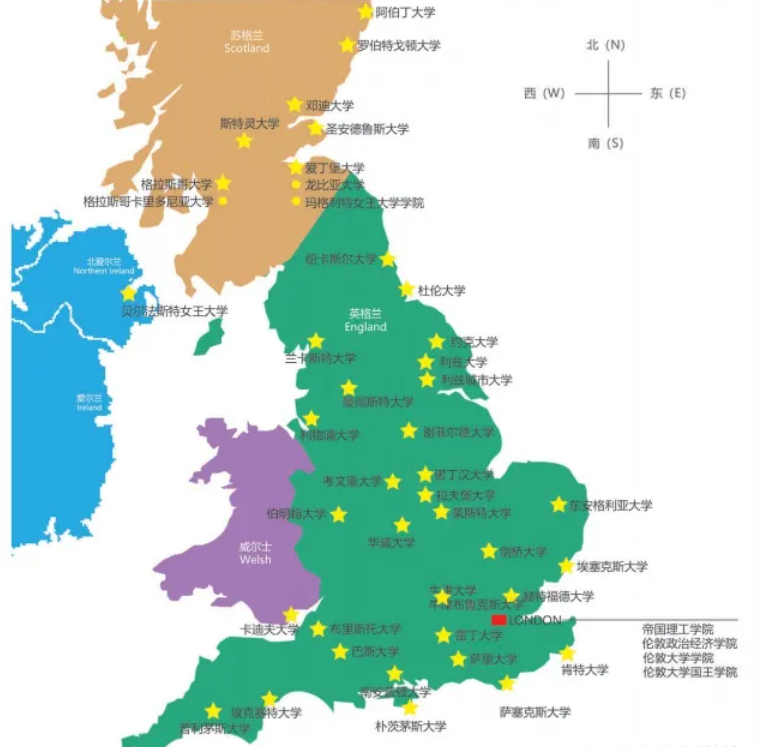 说到具体的区域划分,可以把英国本土分为英格兰、威尔士、苏格兰和北爱尔兰四部分,今天的院校也按这四大部分来介绍。