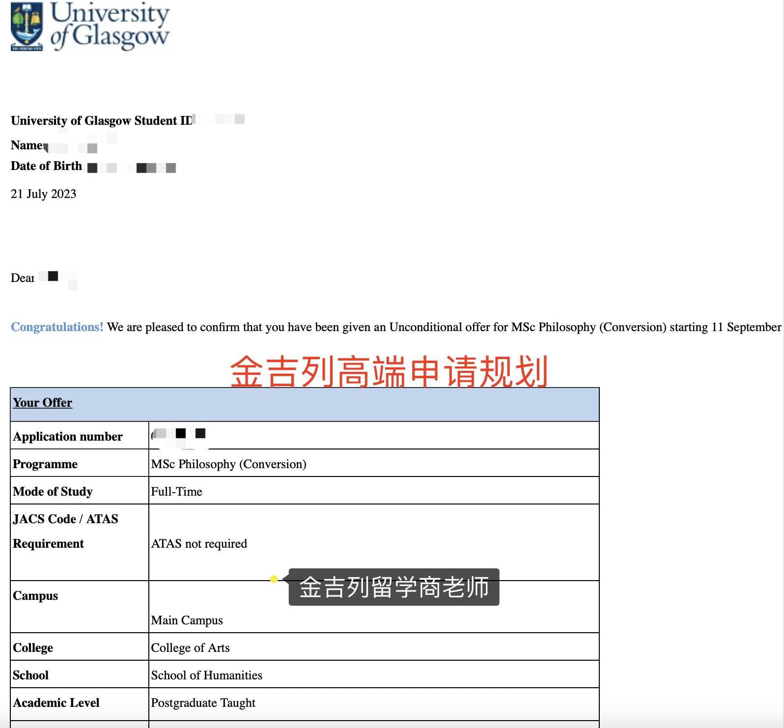 录取院校以及专业:格拉斯哥大学哲学(转换)硕士