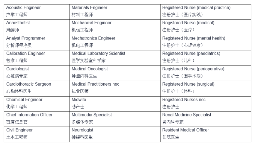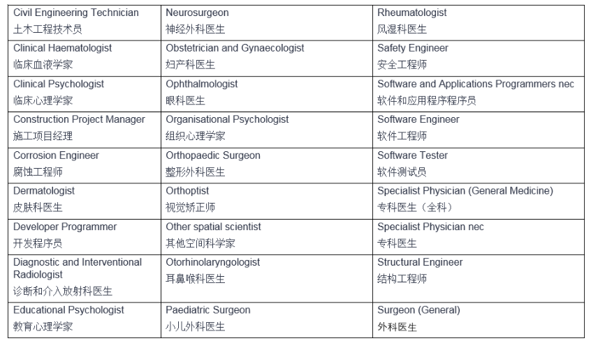 •工作领域包含:建筑、工程、医生、护士及部分高端医护类职业和 IT 类