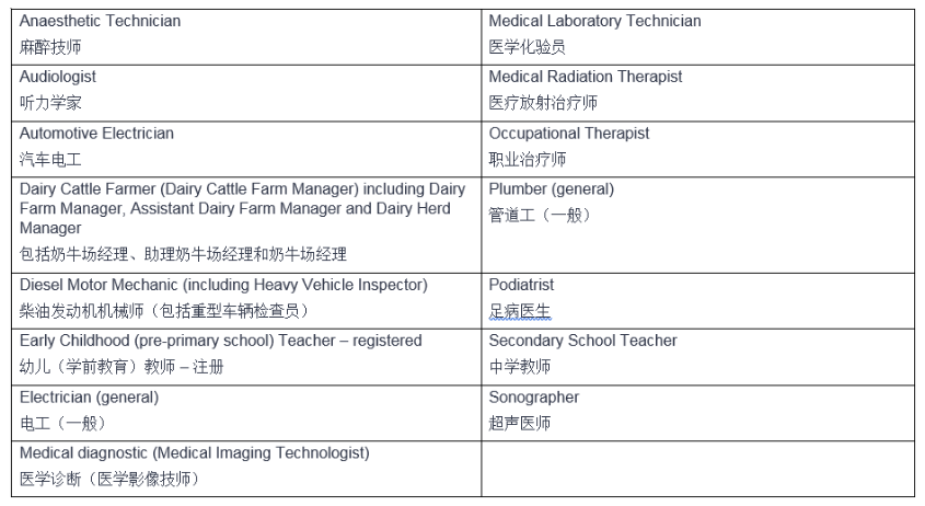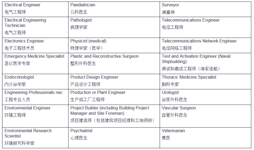 •工作领域包含:二线医护人员、教师 (不含小学教师)、技术工及农场经理