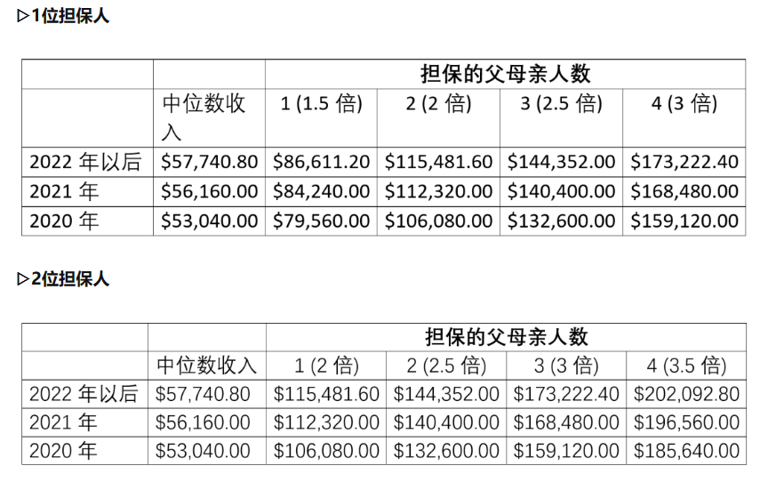 担保人收入的最低标准 (须有 3 年的收入证明):