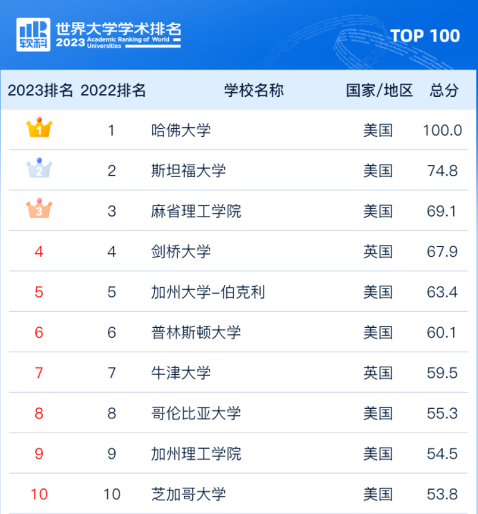 哈佛大学仍然稳坐头把交椅,连续21年蝉联全球第一。斯坦福大学和麻省理工大学紧随其后,位列全球第二和全球第三。