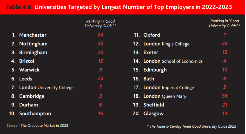 22/23年英国企业最喜欢的大学
