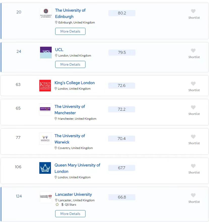 从以上排名来看,G5院校论计算机学科实力,牛津>剑桥>帝国理工>UCL。其中牛津和剑桥在总分上差距很小,两者仅差1.1分,可以说牛剑两所院校的实力几乎不相上下,都是学计算机科学的绝佳选择!