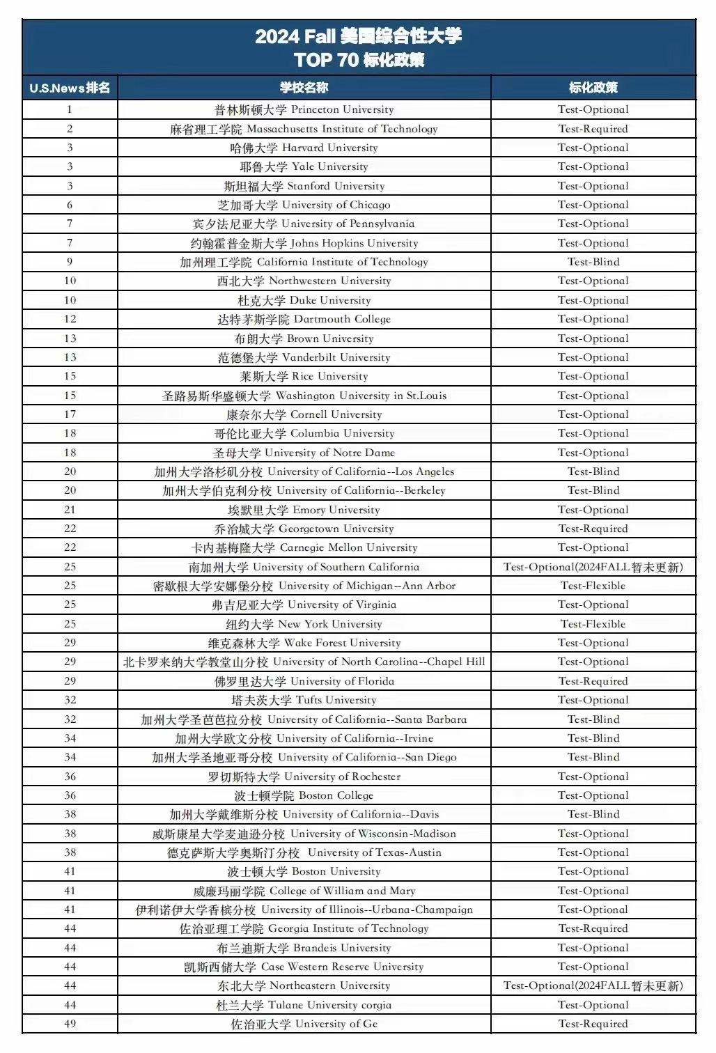 TOP50美国大学中,有超过三分之二的学校都采取了标化可选政策,提交了会考虑,不提交不影响录取。