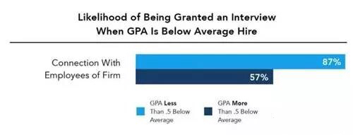 即便是GPA低于要求的情况下,与在职员工有一定关系的求职者仍有大概率得到面试机会。