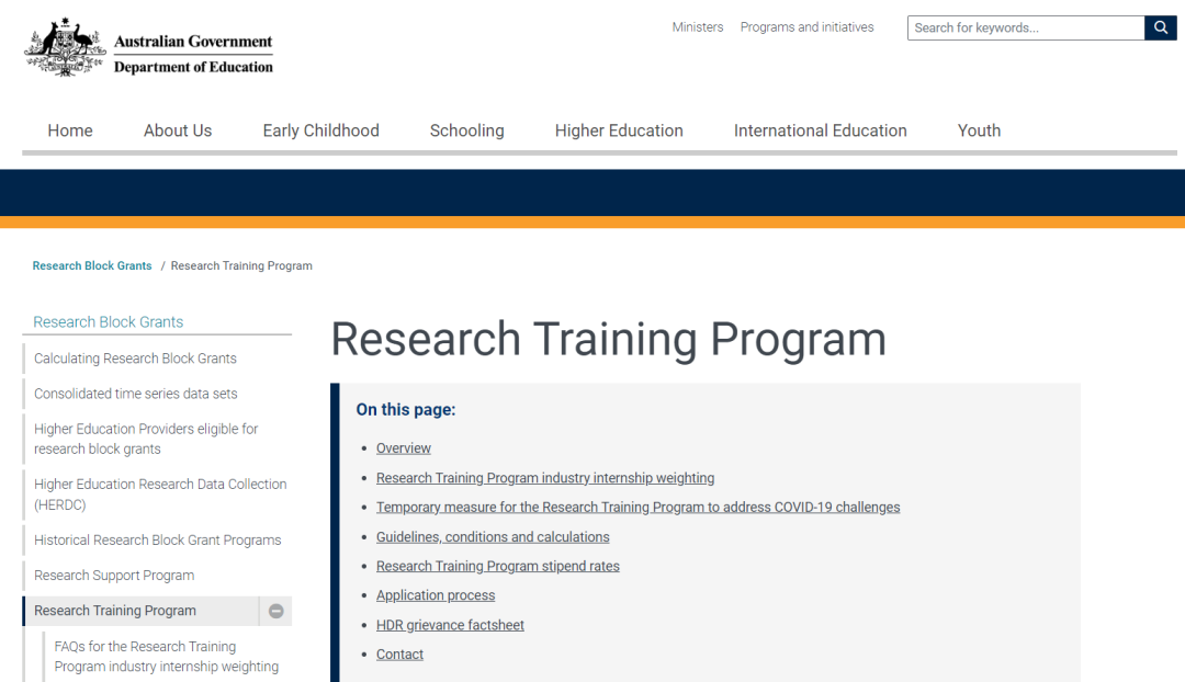 RTP,又称 AGRTP,它的前身为澳洲国际研究生研究奖学金 International Postgraduate Research Scholarship(IPRS),是澳洲联邦政府所提供的全额奖学金。