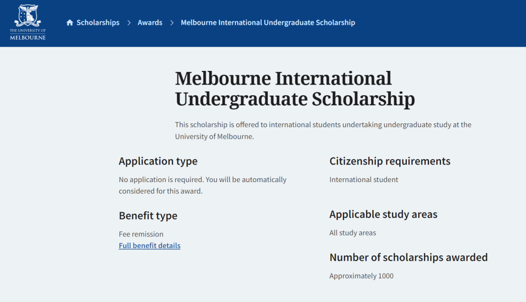 墨尔本大学为国际本科生以及研究型研究生学位的学生提供了学费减免,这也是奖学金的一种形式。