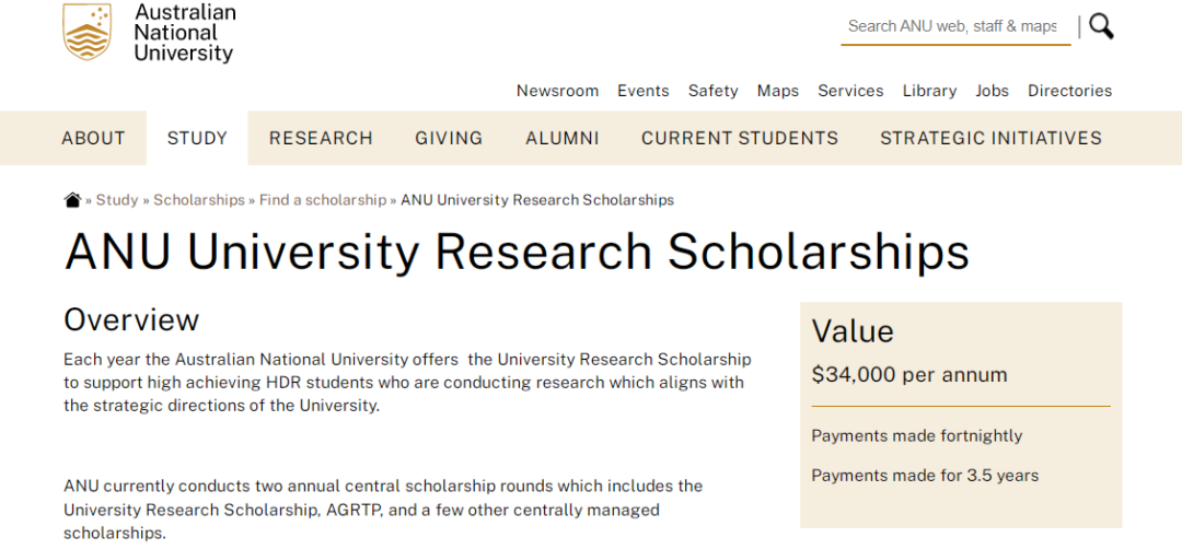 还有澳洲国立大学为研究生提供每年 34,000 澳元的研究奖学金等等。