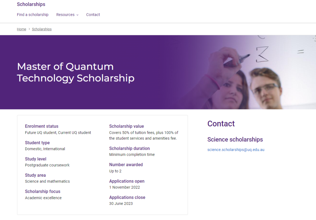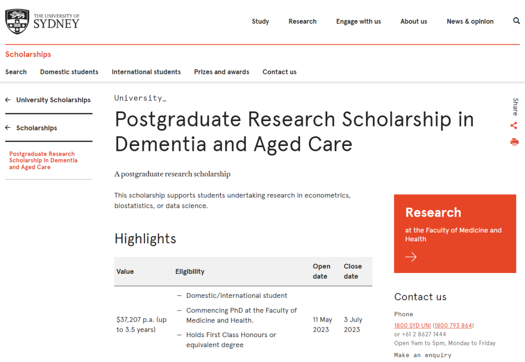 比如悉尼大学医学与健康学院就为就读认知障碍症及老年护理研究项目提供了每年约 4 万澳元的奖学金;昆士兰大学为量子技术硕士项目提供的学费减免奖学金。