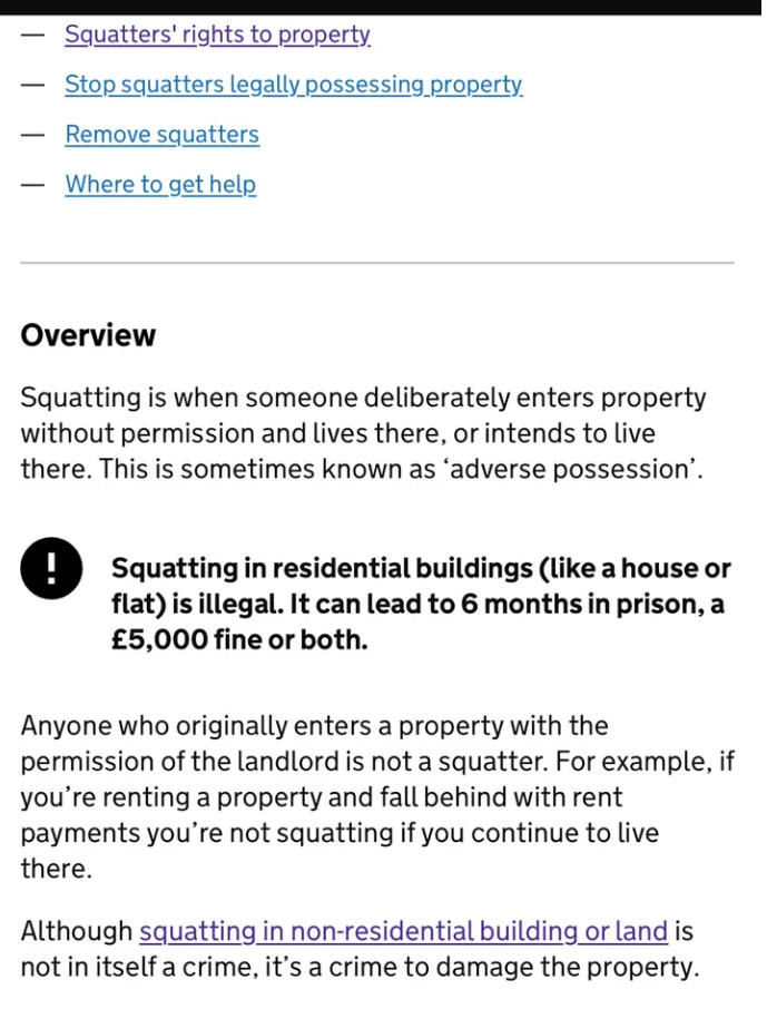 其中,如果你占领的房屋,那个业主没有在HM注册,那么HM会联系业主,如果能联系到的话,如果商量中你不同意,HM还可以通过法庭来判决该物业属于谁,不过无论结果如何,你都可能要支付业主的费用,比如他们合理的法律费用等。