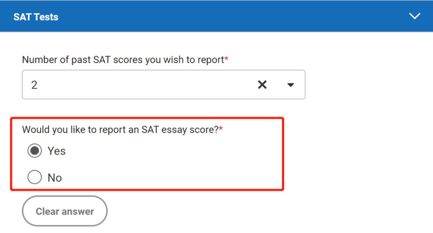 在 Testing部分,对于 SAT 和 ACT 的 Writing Section,问题由 “Have you taken…” 改成了 “Would you like to report…”,这说明学生在 report SAT/ACT 时,即使考了写作,也是可以不用 report 的,这无疑增加了 self-report 的灵活性。另外,托福部分删除了 Toefl Paper Test,优化了选项内容。