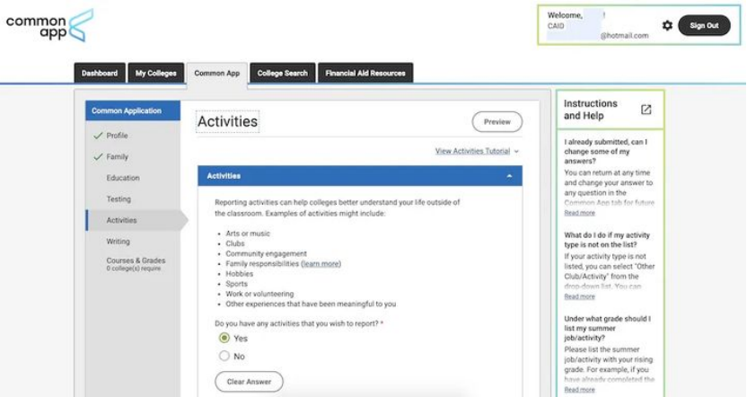 可以看到,活动包含“艺术及音乐”,“社团”,“社区参与”,“家庭责任”,“兴趣”,“运动”,“工作或义工”,及“其他你觉得有意义的经验”,这些都是课外活动!