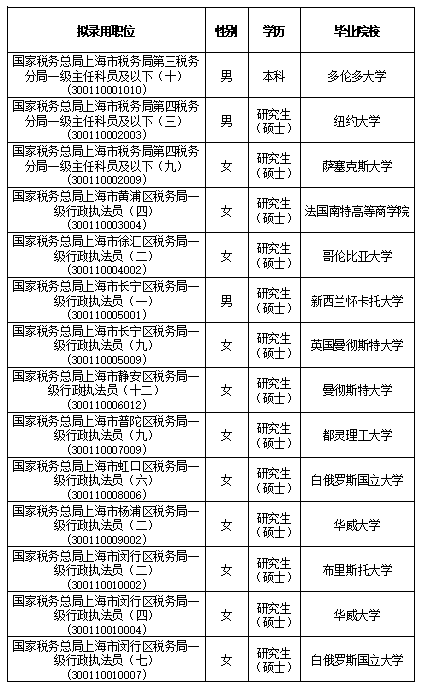 国家税务总局上海市税务局公布的2023年度拟录用公务员名单中:第一批公示的494人中,有24人的毕业院校显示为国外院校 ,还有8位毕业院校位于香港或澳门