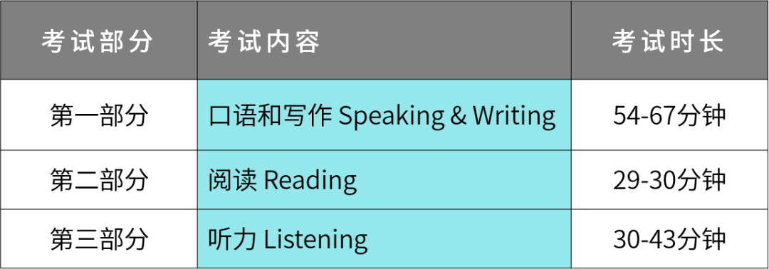 考试形式:采用全程机考和自动评分的考测方式,考试科目为听说读写四项。