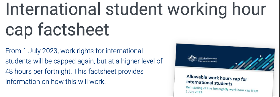 为了应对 COVID-19大流行期间的劳动力短缺问题,澳教育部门放宽了学生签证的工作时间。但从2023年7月1日起,澳大利亚将重新引入学生签证的工作时间,以每两周48小时为上限。