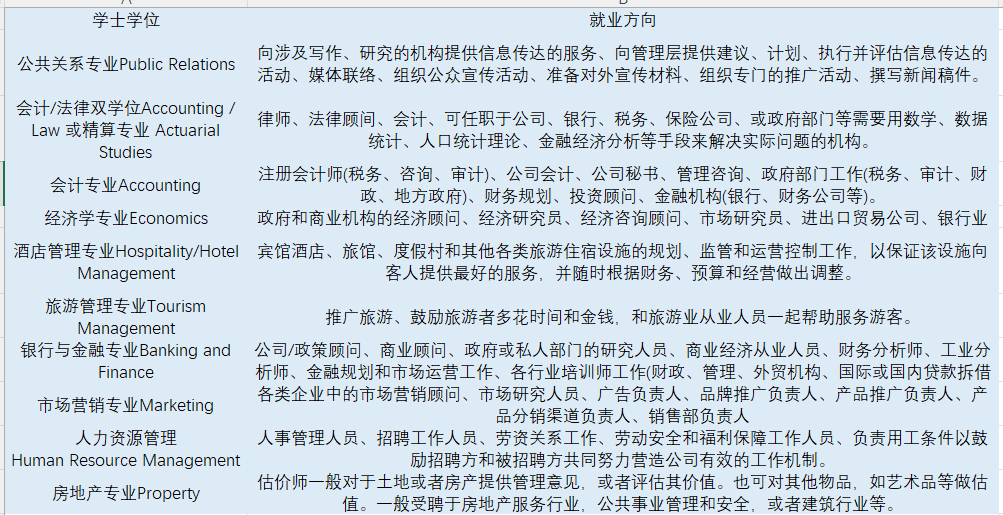商科就业方向: