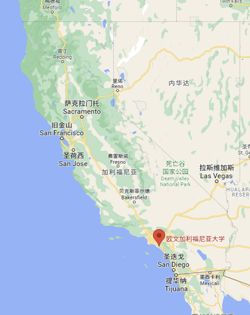 Location: Irvine, CA, 92697。位于加州西部,南部。洛杉矶以南,距离洛杉矶市中心45英里(72公里,1.5小时车程)。距离洛杉矶国际机场42英里(67公里,高速1小时)