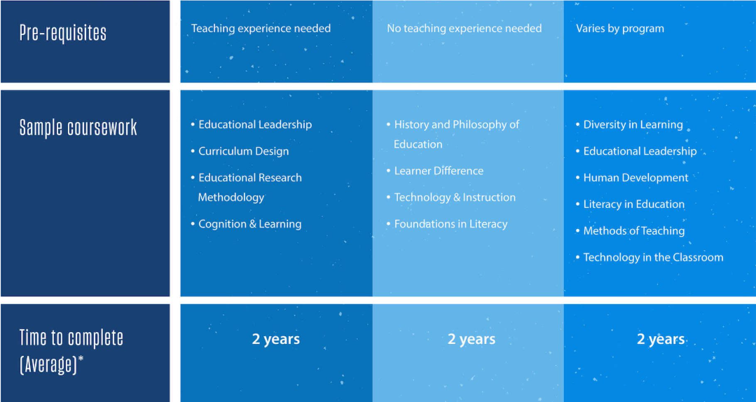 教育学硕士学位是许多教育工作者追求的研究生学位,其原因包括改善教学实践,对学生的学习和发展产生更大的影响,以及学习如何探索创建包容性学习环境的有效方法。获得教育硕士学位还可以增加教育工作者的工资范围,并为课堂内外更多与教育相关的机会打开大门。事实上,88%的大型学区为拥有硕士学位的教师提供额外的工资。