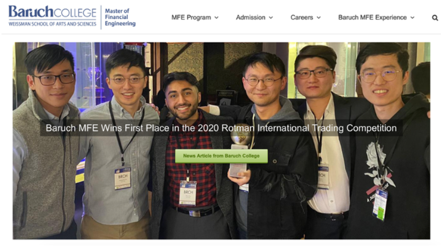 巴鲁克MFE荣获2020 加拿大Rotman国际交易大赛冠军。