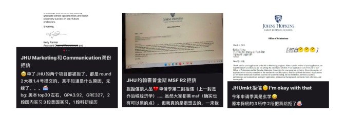 网上大量数据证实, 前40美本,GPA3.7,GRE325,2段实习被JHU发拒信的大有人在。