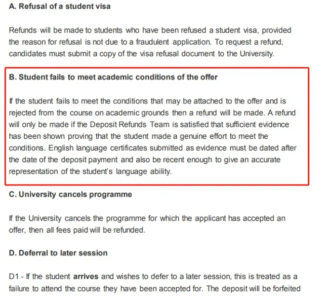 如上图所示,是布里斯托大学列出的几种退费条件,今天重点说说B类,也就是大多数宝宝的误区所在。