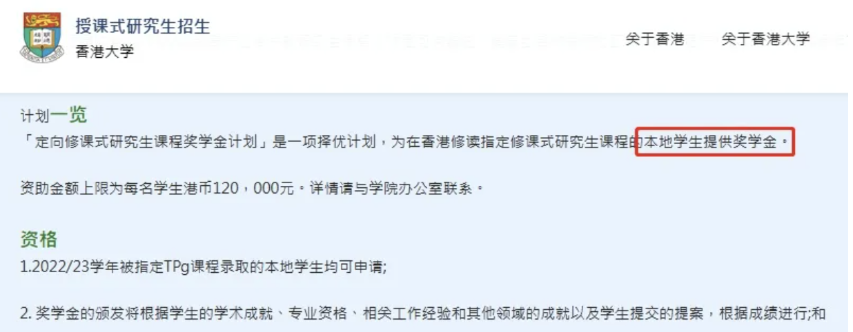 如果入读香港大学,选择指定课程入读的本地生,可以申请【定向修课式研究生课程奖学金计划】。