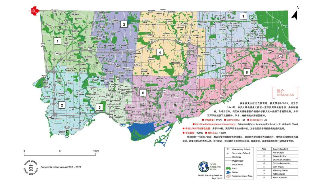 多伦多天主教公立教育局(Toronto Catholic District School Board,简称TCDSB)位于加拿大最大的城市多伦多,下辖学校197所 (165所小学,31所中学、1所成人高中)均可招收国际学生,其中多所学校有超过百年的历史,部分学校前身是私立贵族学校。学校配备现代化的教学、实验设施,学习条件十分优越,开设完整的ESL课程、AP和IB课程等。