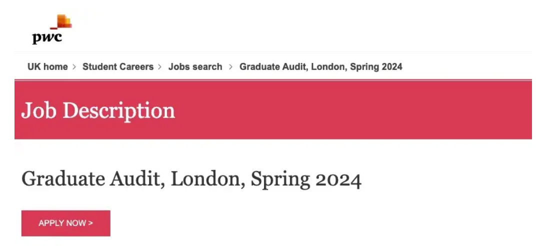 话说回来,PWC岗开放了2024审计岗位毕业生项目了!好快!